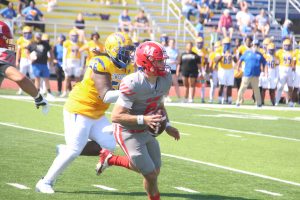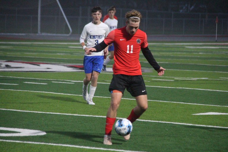 Ben Bocox possesses the ball during the first half of McPherson's 6-0 win over Winfield on Monday, October 6. The Bullpups improved to 6-5 to go above the .500 mark for the first time this season. Photo by Joel Muhs