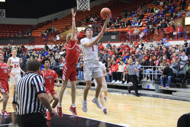 Owen Pyle goes up for a layup during the third quarter of McPherson's 61-48 win over Fort Scott in the class 4A state quarterfinals on Thursday, March 7. Pyle finished the game with 11 points. JOEL MUHS