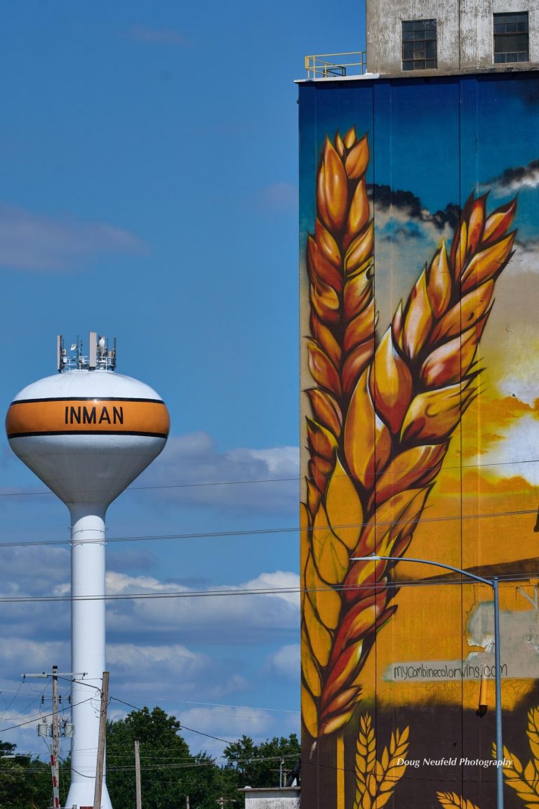 Despite a few challenges and setbacks, progress on the grain elevator mural in Inman is going well.Mindy Allen of Mindy’s Murals has been hard at work transforming the elevator into a work of art since June 10.