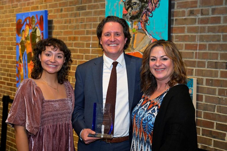 President Michael Schneider with his daughter Hayden and wife Kandee after the awards ceremony.photo provided by McPherson College